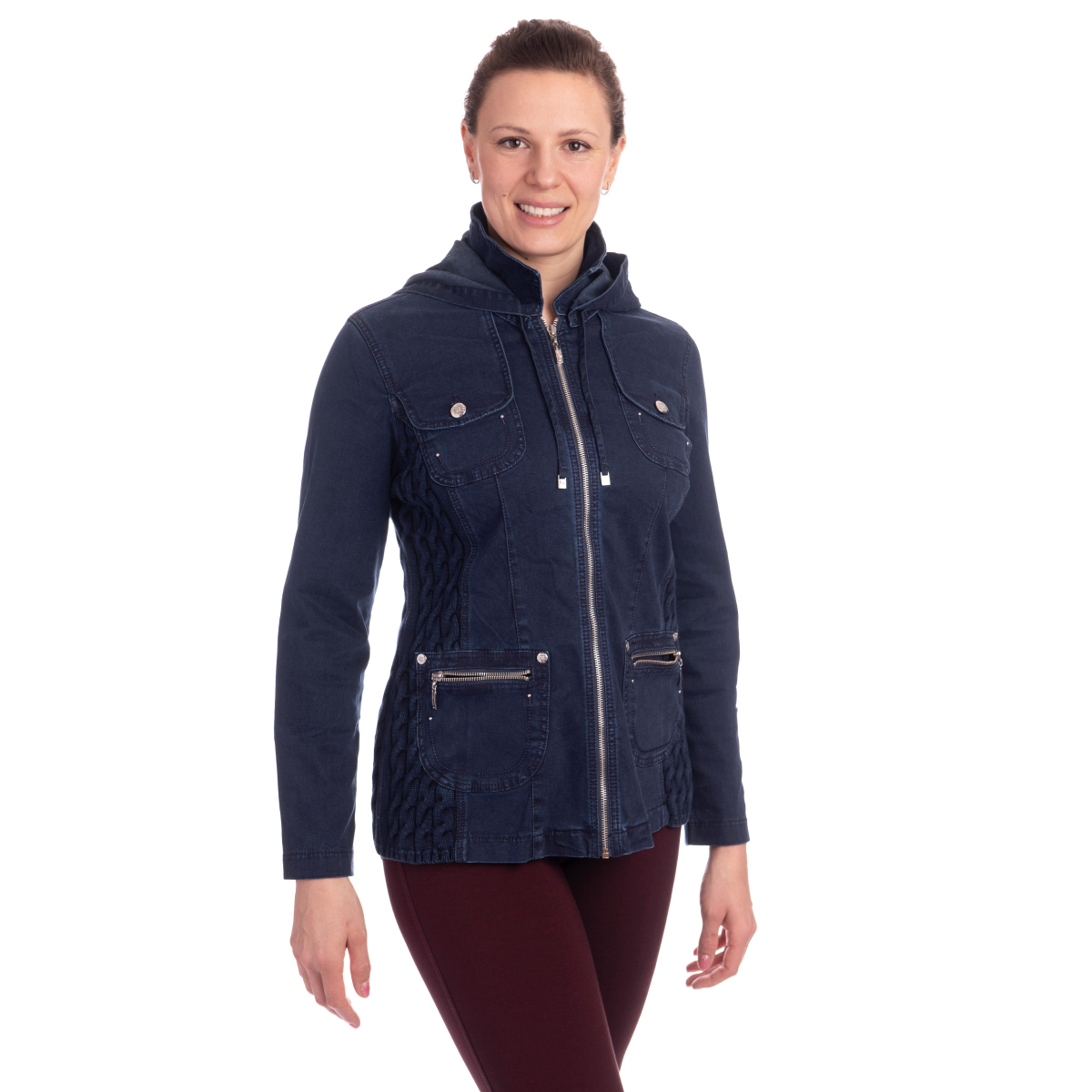 - pružné úpletové vsadky s copánkovým vzorem na bocích