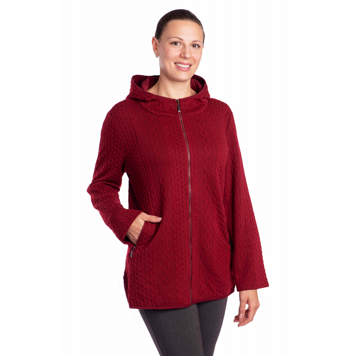 - přechodová úpletová bunda s kapucí a kapsami na bocích