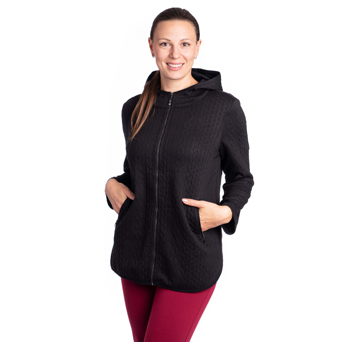 - přechodová úpletová bunda s kapucí a kapsami na bocích