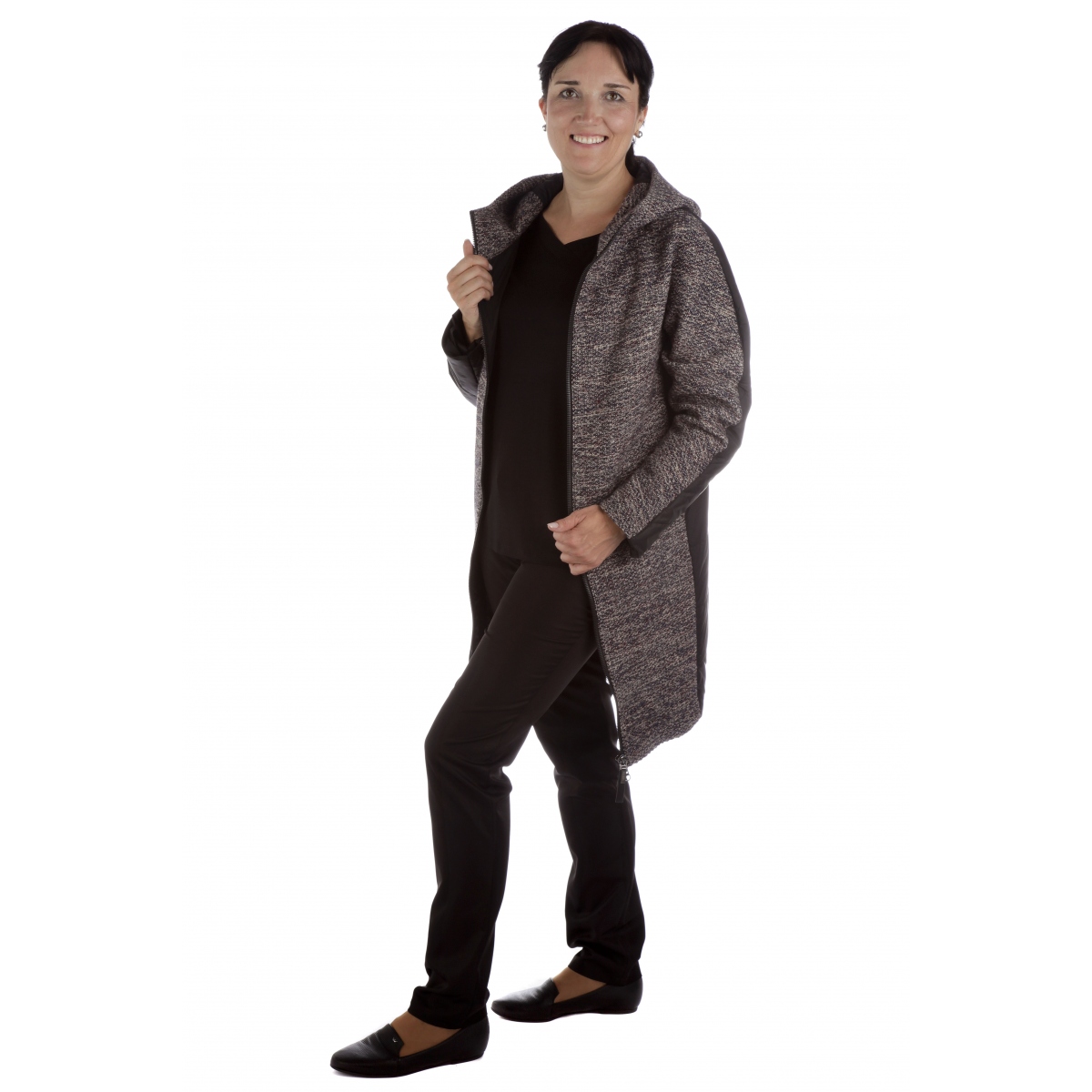 - zajímavý dlouhý přechodový kabát z kombinovaného materiálu