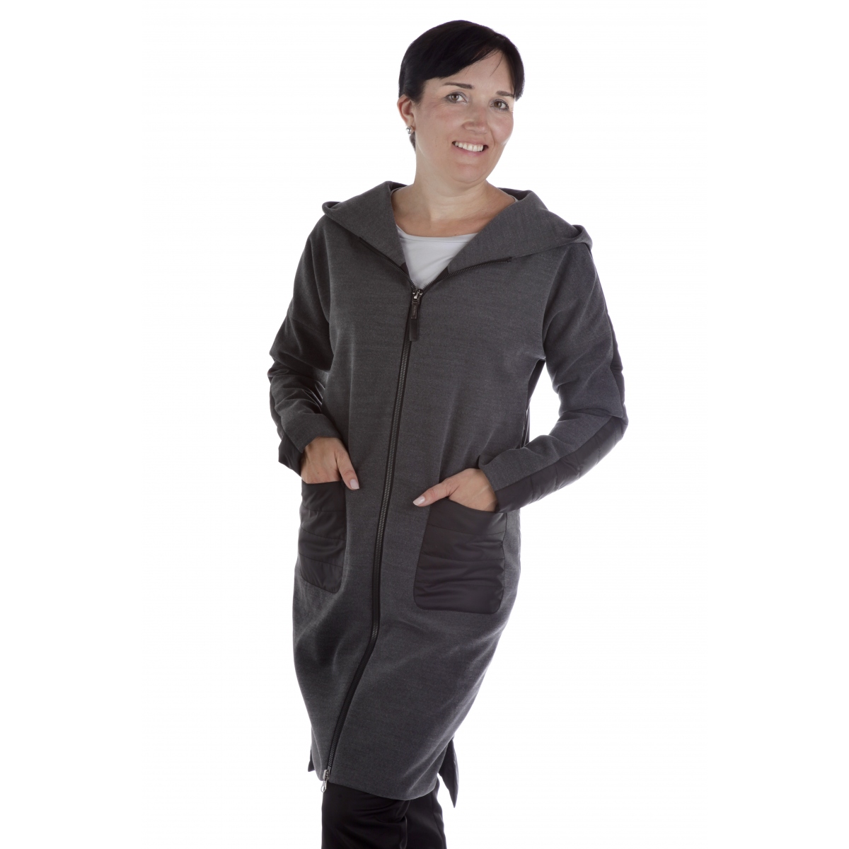 - zajímavý dlouhý přechodový kabát z kombinovaného materiálu