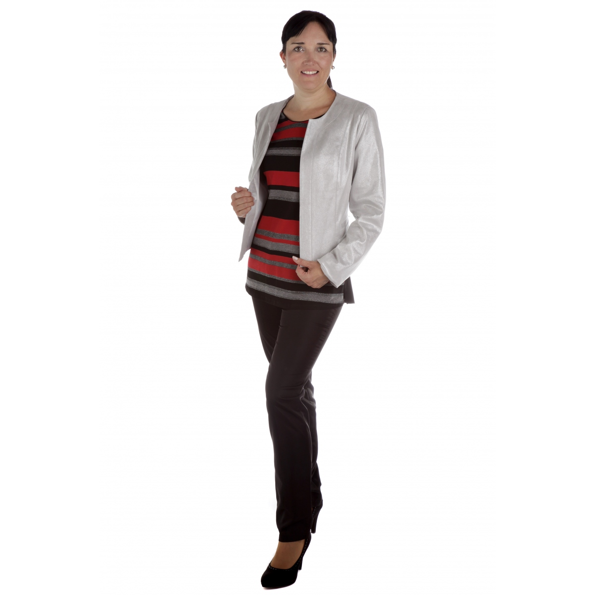 ST460 - dámské společenské bolerko satén šedostříbrné