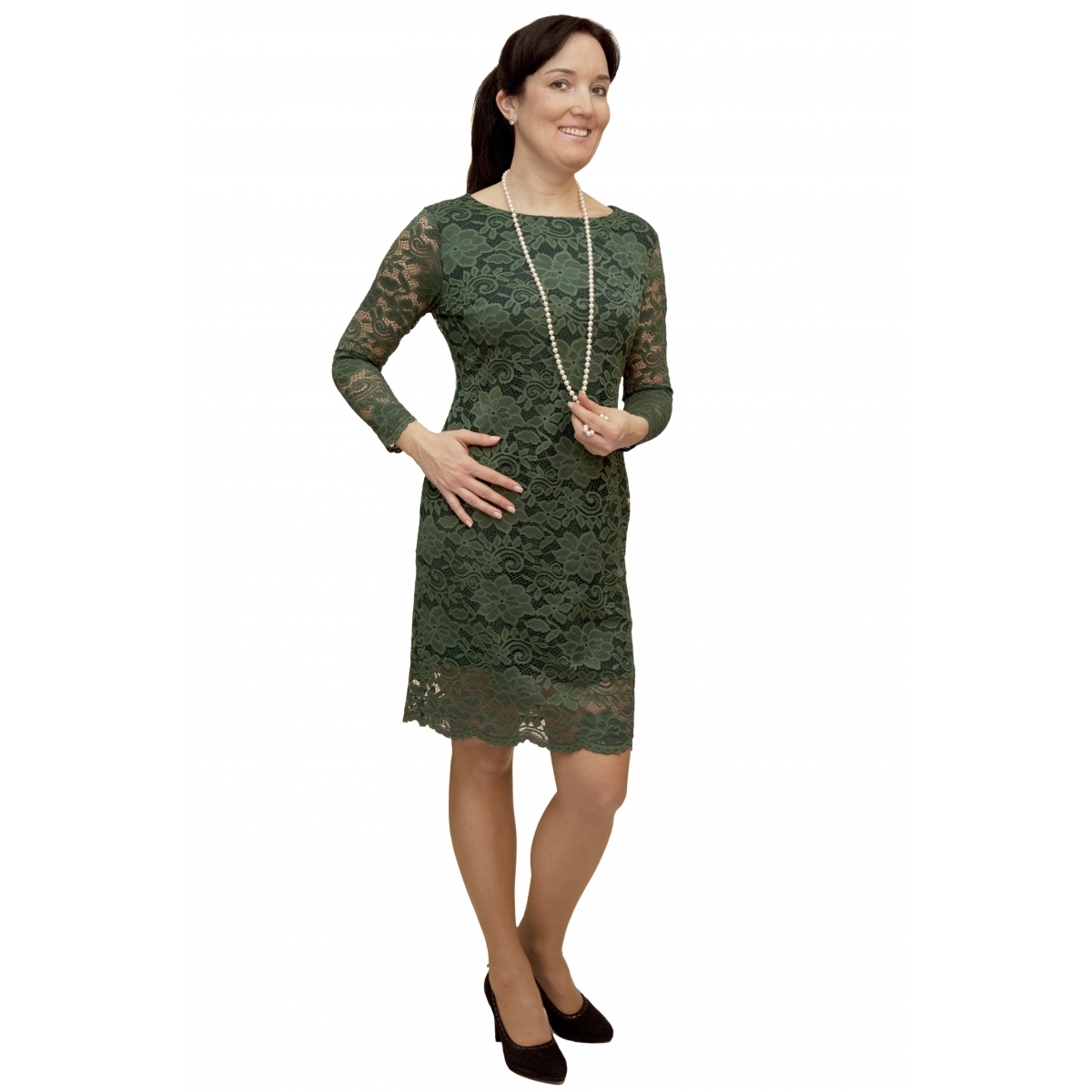 - elegantní pouzdrové společenské krajkové šaty v tmavě zelené barvě