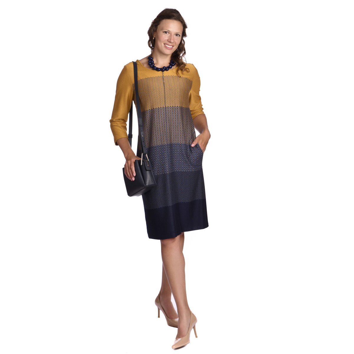 - atraktivní šaty se širokými žlutomodrými pruhy