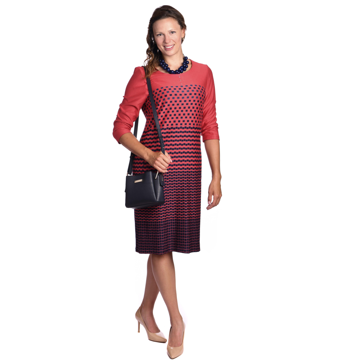 - atraktivní malinové šaty s modrými kostičkami
