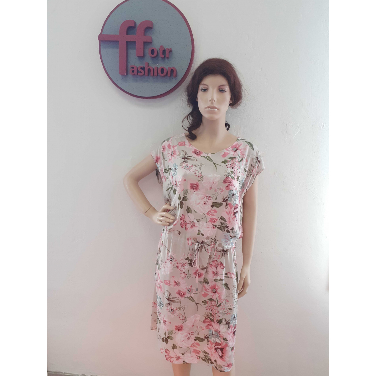 - lehké, letní šaty s růžovými květy na světle béžovém podkladu