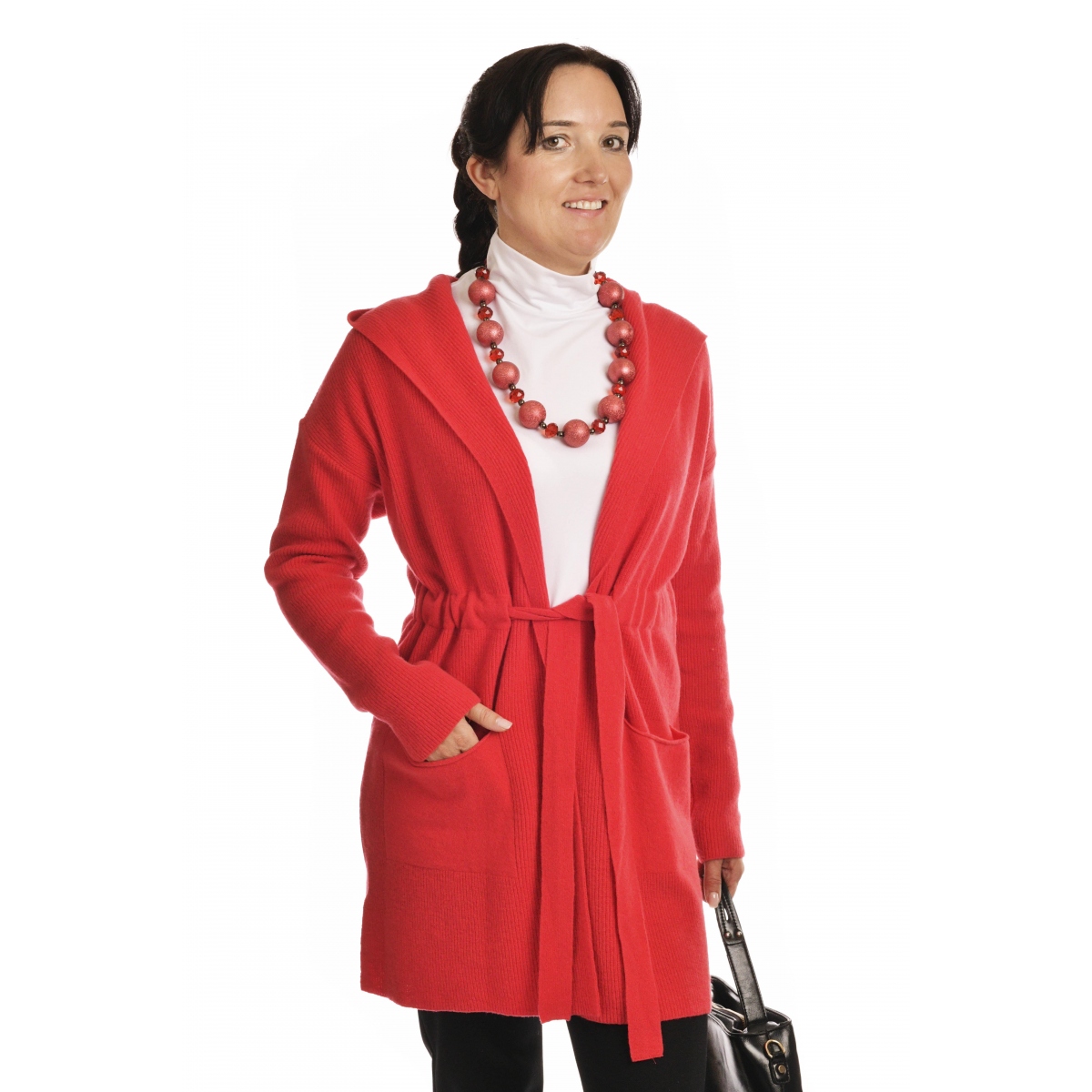 IM2726 - dámský dlouhý vlněný kardigan červený