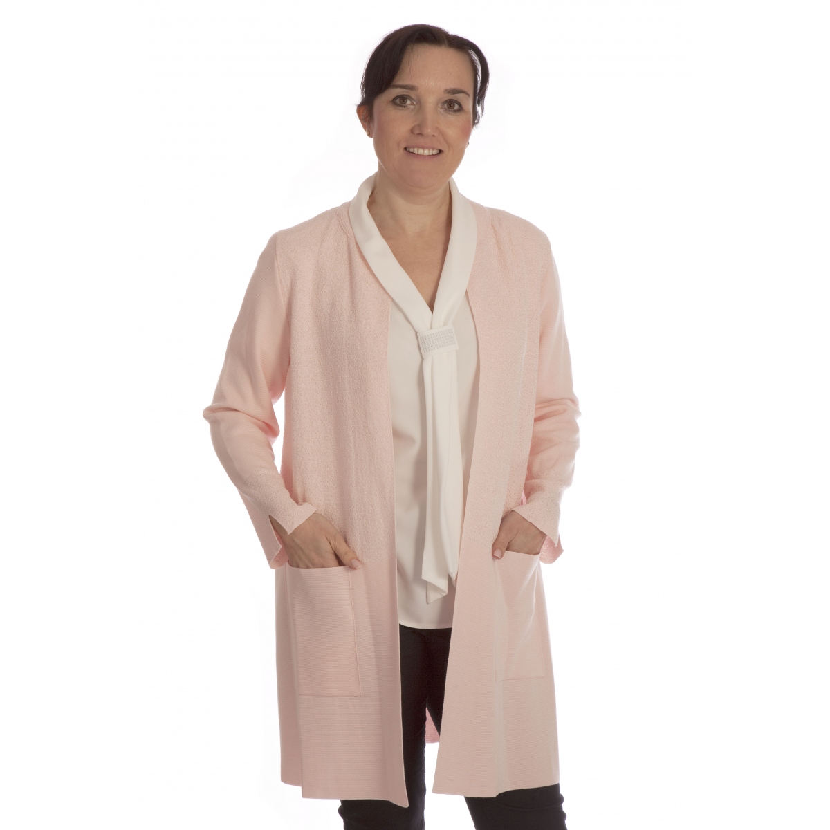 - dlouhý kardigan v barvě bílé, černé nebo růžové prošívaný stříbrnou nití
