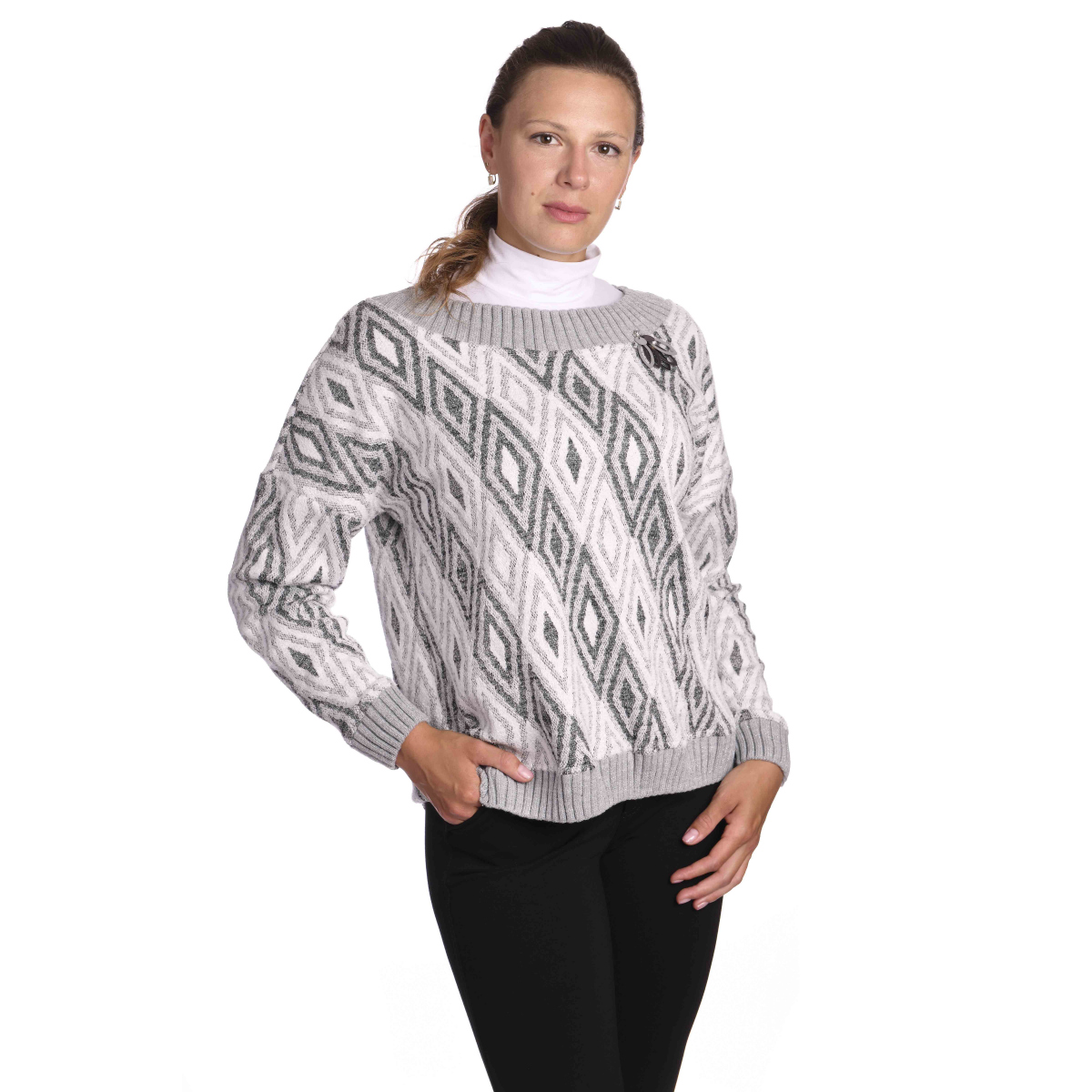 - šedobílý svetr prošitý lurexovým vláknem