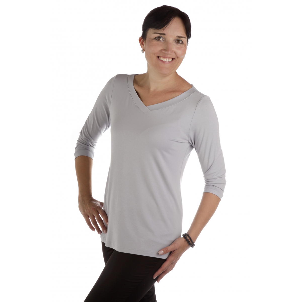 DAM 351 - dámské světle šedé tričko s 3/4 rukávem
