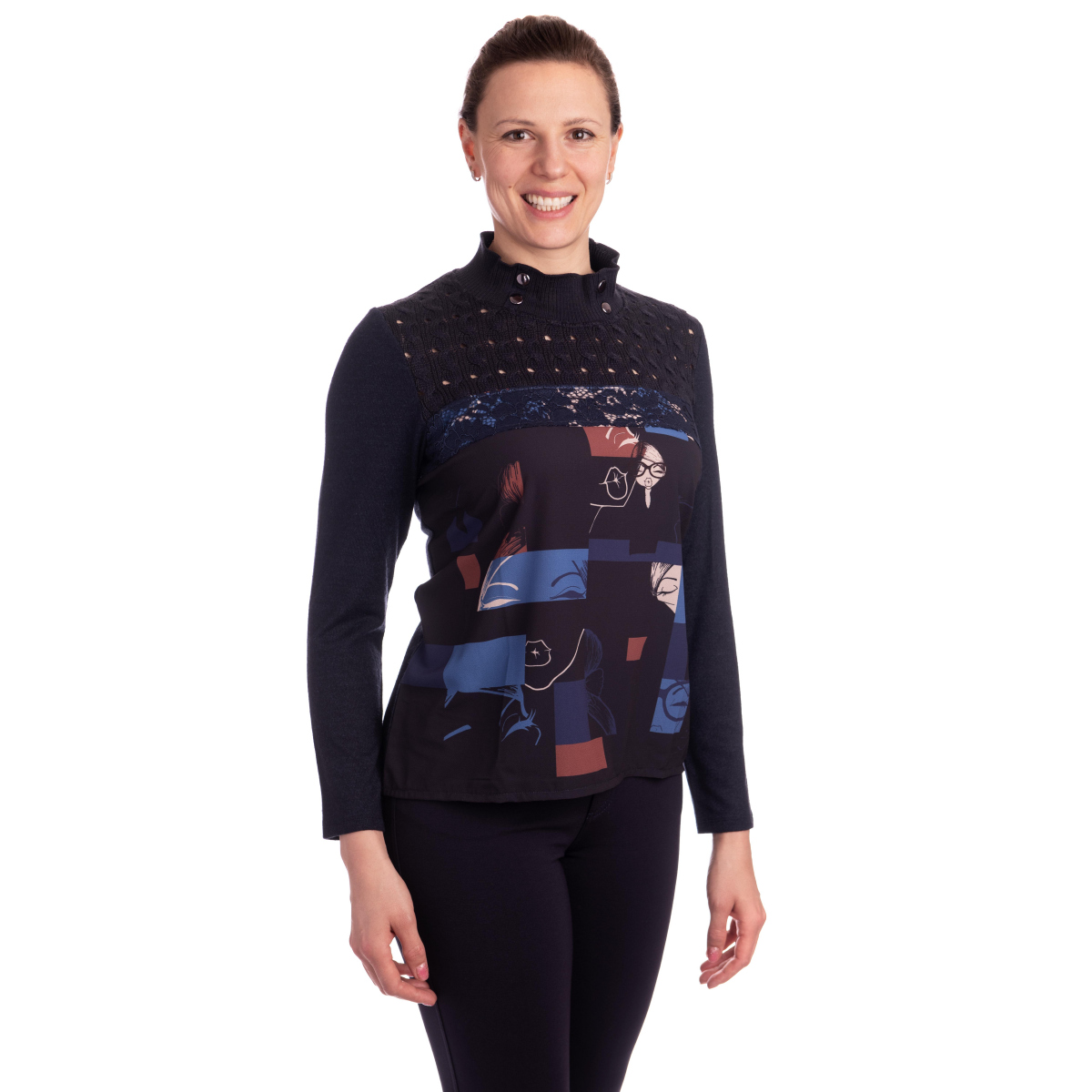 - svetrový, copánkový úplet s perforací na prsou a ramenou