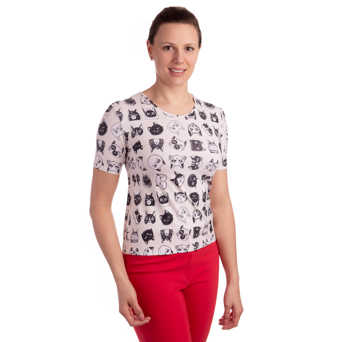 - tričko s veselými obrázky koček na smetanovém podkladu