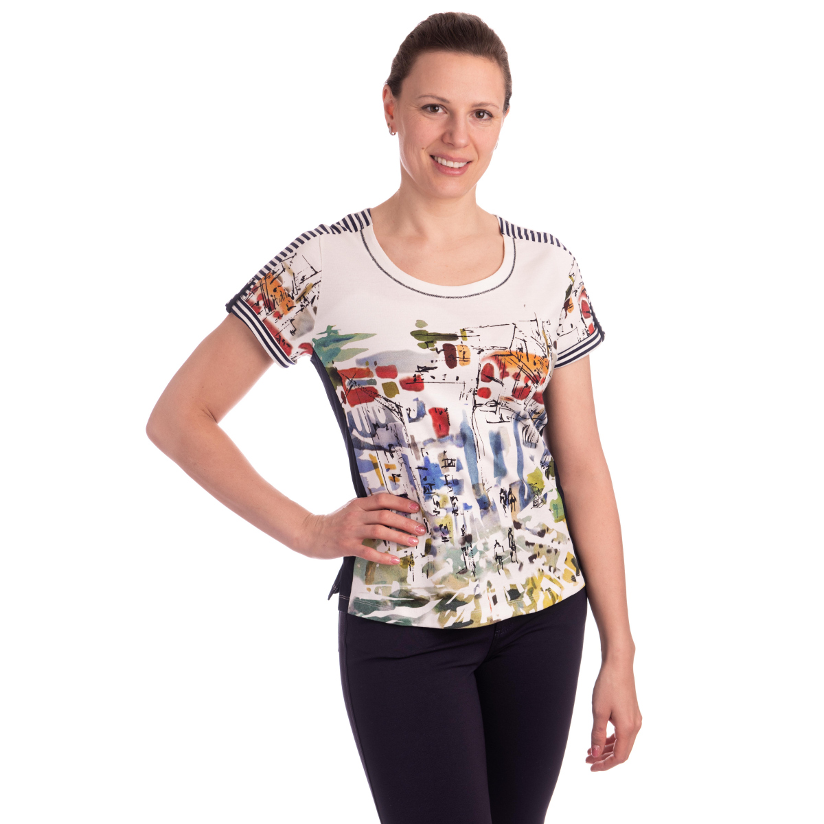 - smetanové tričko s barevným printem městečka