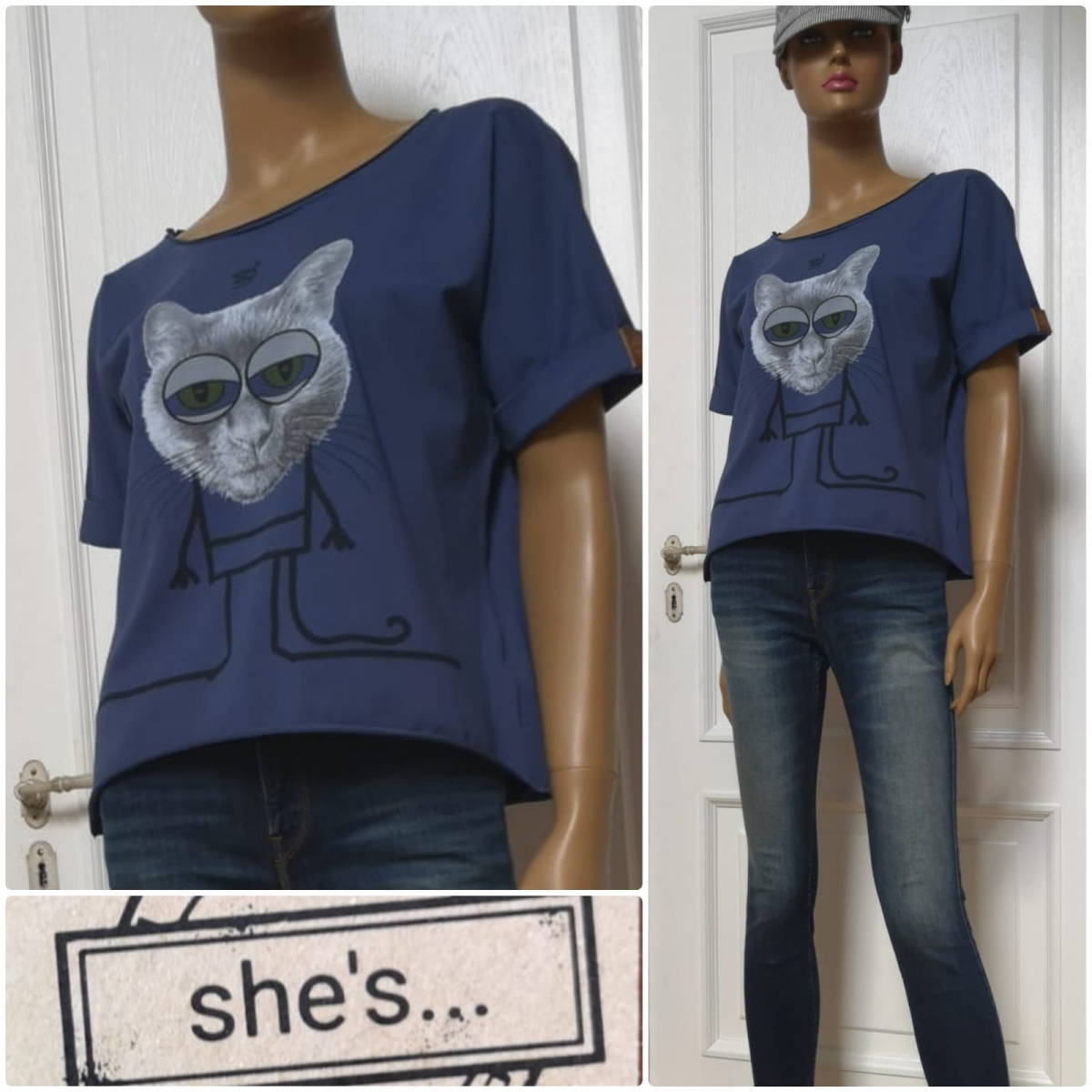 - tmavomodré crazy tričko s veselým obrázkem kočky