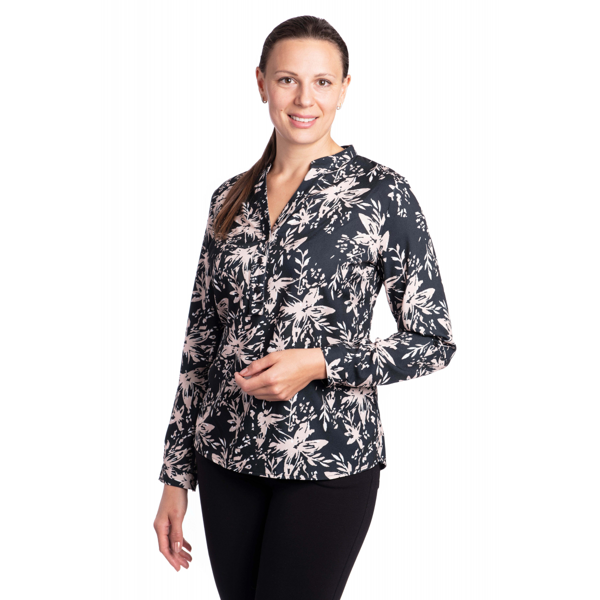 - halenka z lehkého materiálu s béžovými květy na černém podkladu